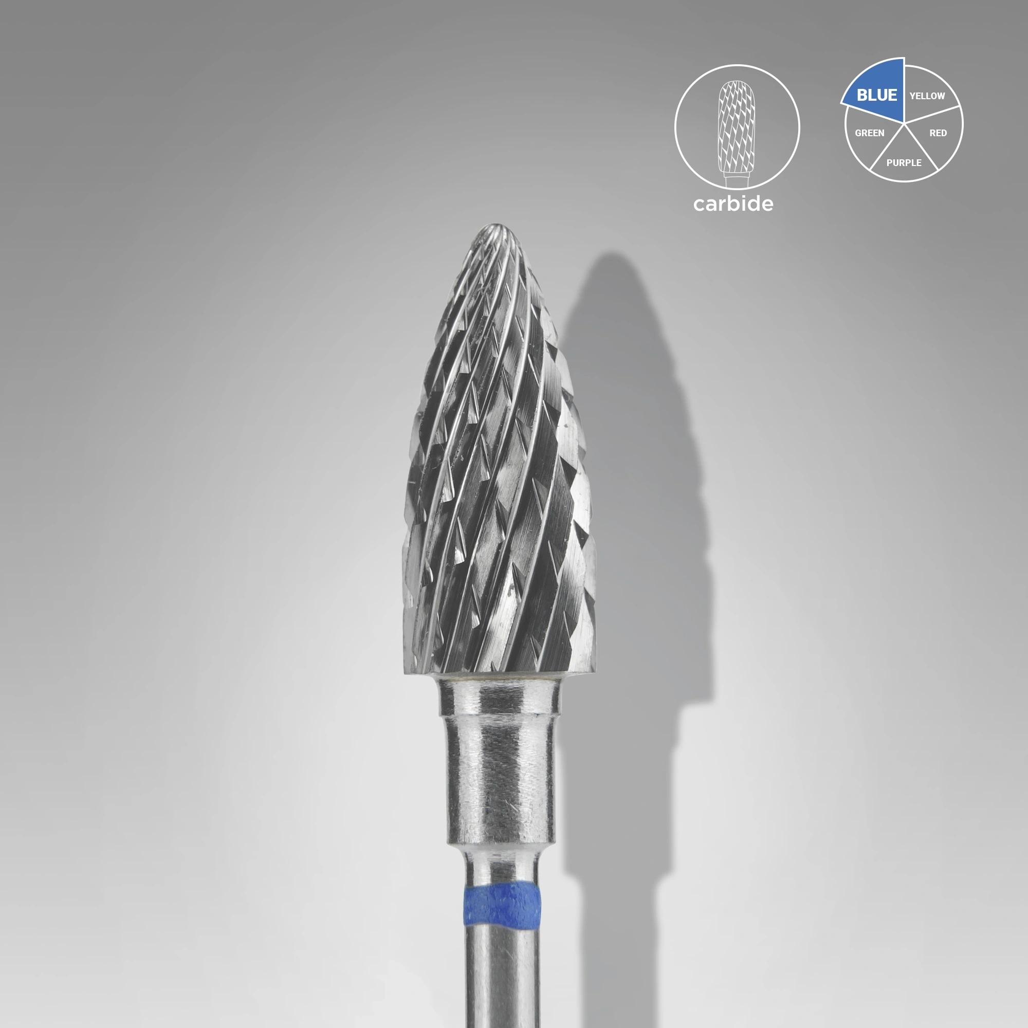 Staleks EXPERT sert alaşım kozalak freze ucu, protez tırnak uygulamalarında kalın ürünlerin inceltilmesi ve yüzey formunun düzenlenmesi için geliştirilmiştir.