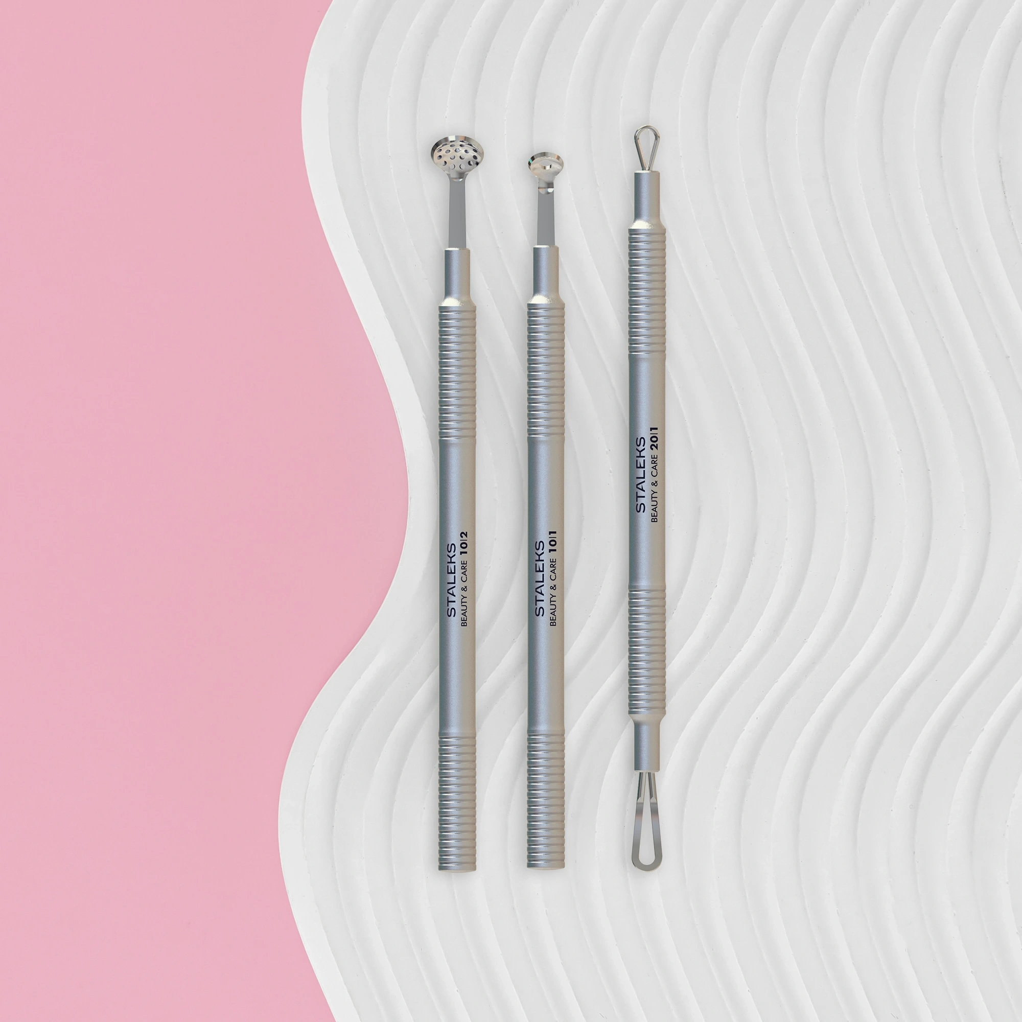 Staleks BEAUTY & CARE 30 Cilt Temizleyici Seti, güvenli ve hijyenik cilt bakım uygulamalarında kullanılmak üzere özel olarak geliştirilmiştir. Set içerisinde yer alan Uno ucu, geniş yüzeyli komedonları temizlemek için tasarlanmışken, 19 delikli süzgeç ucu, nokta baskısını eşit dağıtarak daha kontrollü bir çalışma sağlar. Çift taraflı döngü ucu ise ince ve derine yerleşmiş siyah noktaların kolayca çıkarılmasına yardımcı olur.