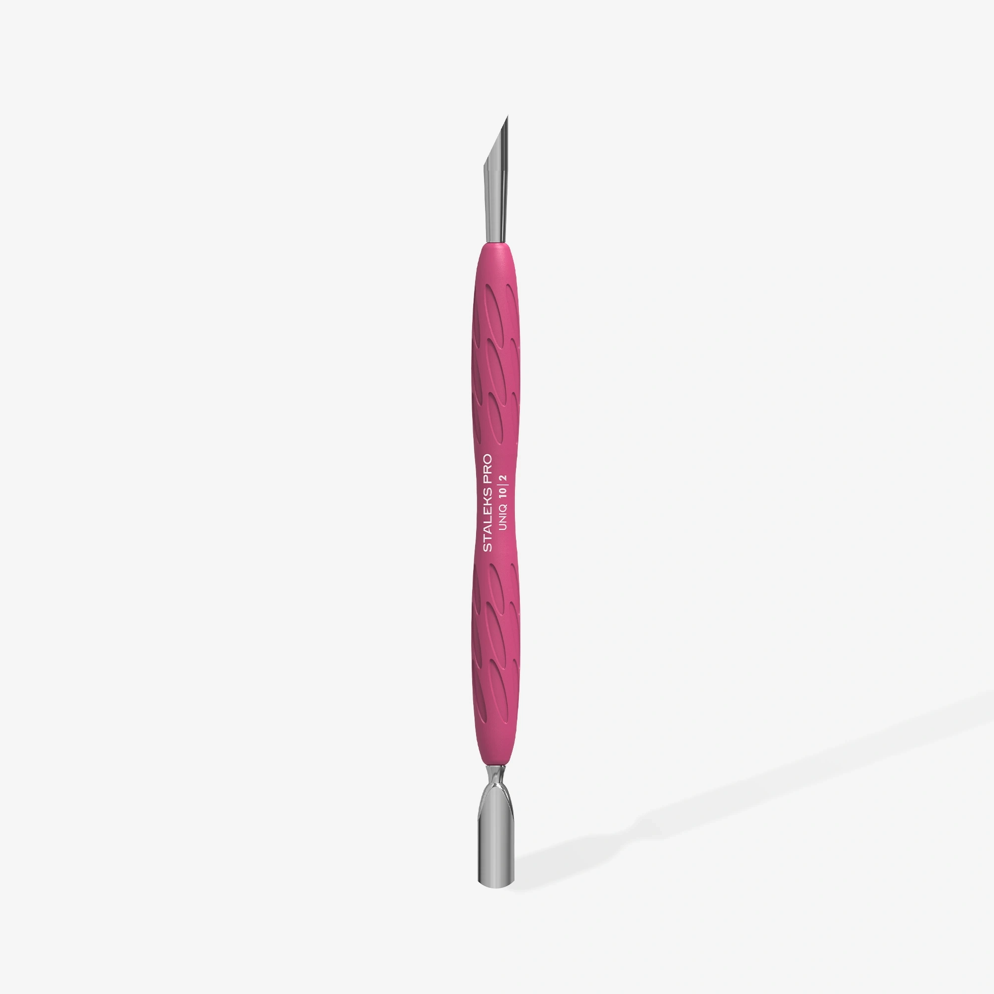 Staleks “Gummy” UNIQ 10 TYPE 2 Silikon Saplı Tırnak Eti İtici, manikür uygulamalarında maksimum konfor ve kontrol sağlamak için özel olarak tasarlanmış yenilikçi bir modeldir. Silikon kaplı ergonomik sapı, elin kaymasını engeller ve uzun süreli kullanımda dahi rahat bir tutuş sağlar.