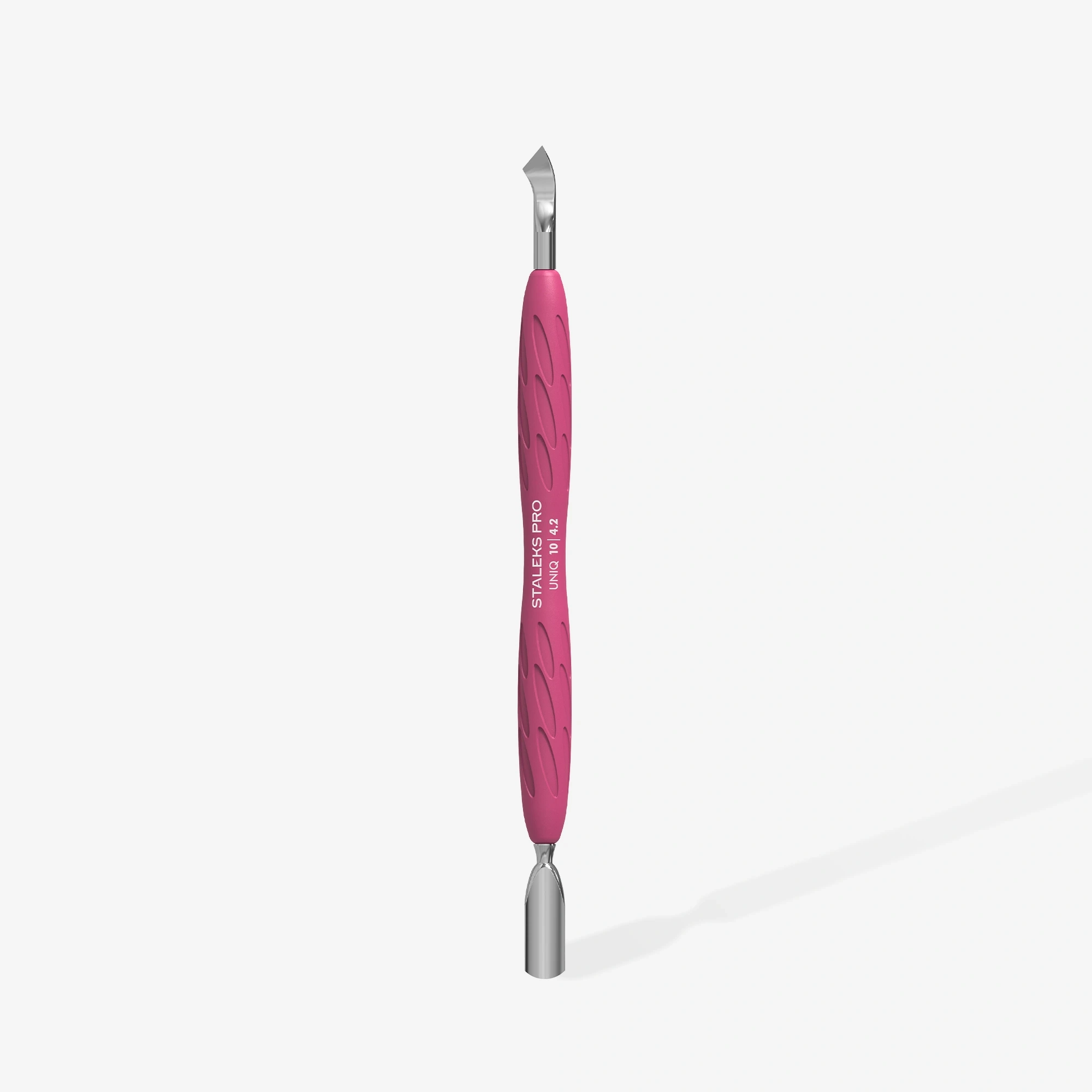 Staleks “Gummy” UNIQ 10 TYPE 4.2 Silikon Saplı Tırnak Eti İtici, manikür uygulamalarında maksimum konfor, stabil tutuş ve yüksek hassasiyet sunmak amacıyla geliştirilmiş özel bir modeldir. Silikon kaplı ergonomik sapı, elde kaymayı engeller ve uzun süreli kullanımda rahat çalışma imkânı sağlar.