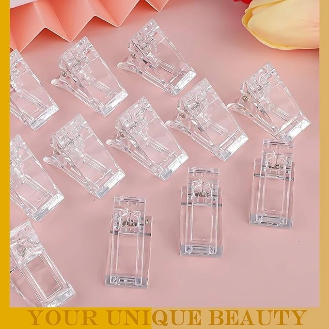 10 adet şeffaf polijel mandalı; polijel uygulamalarında dual formun tırnak üzerinde sabitlenmesini kolaylaştıran pratik bir sıkıştırma klipsi setidir. Bu mandallar, formun kaymasını, açılmasını veya baskının dengesiz olmasını engelleyerek hem salon hem kişisel uygulamalarda daha düzgün sonuç alınmasına yardımcı olur.