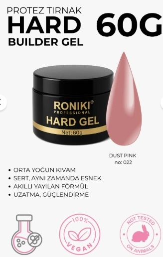 Roniki Professional Builder Jel serisi vegan formül ile üretilmiştir ve hayvanlar üzerinde test edilmemiştir. Bu sayede hem profesyonel kullanım hem de güvenli içerik arayan kullanıcılar için ideal bir tercihtir.