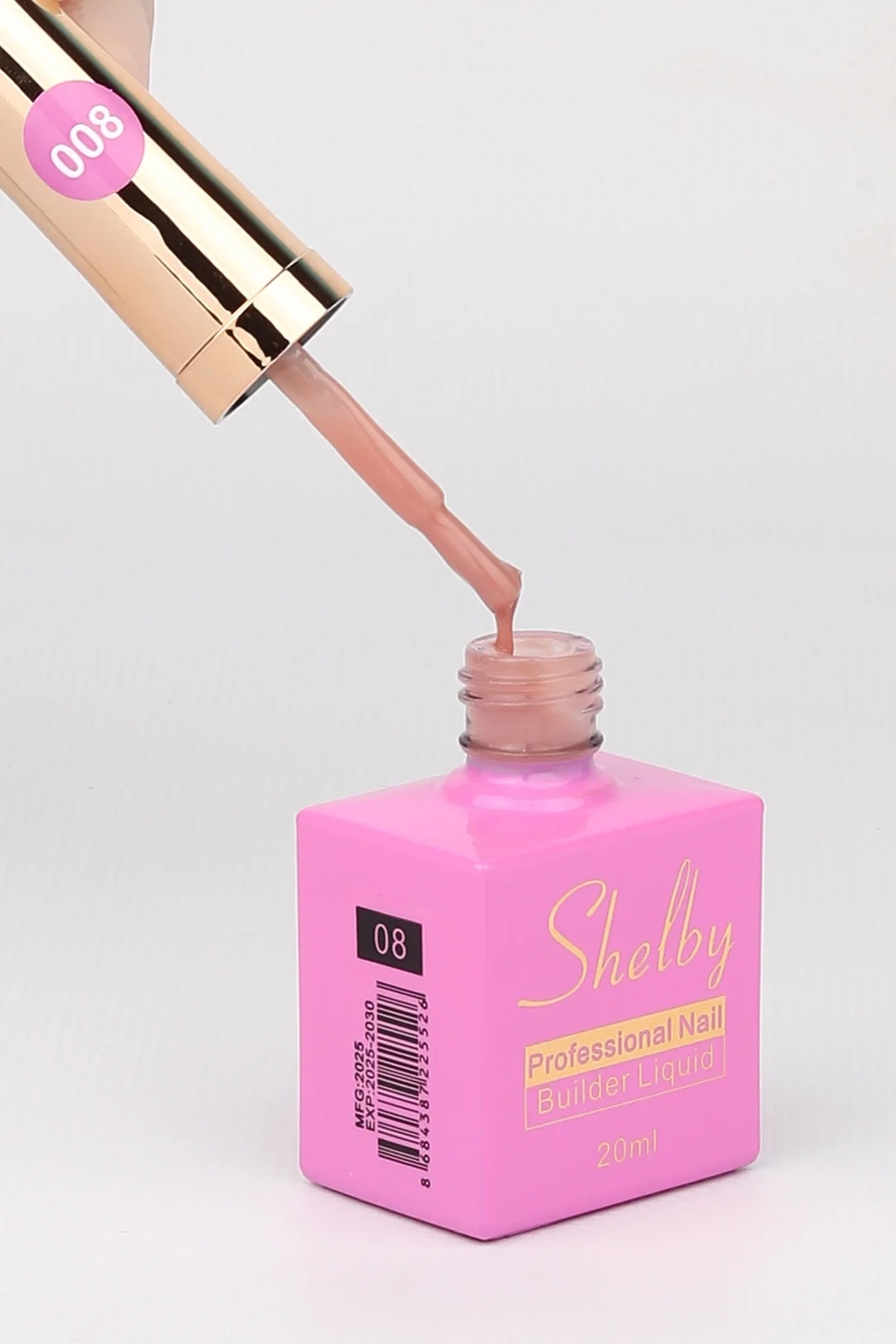 Shelby Shine Builder Liquid Gel 008, protez tırnak uygulamalarında yüksek dayanım ve pürüzsüz yüzey oluşturmak için tasarlanmış profesyonel yapıda bir sıvı builder jeldir. Orta-viskoziteli akışkan formu sayesinde tırnak yüzeyine kolayca yayılır ve kendi kendine seviyelenerek düzgün bir yapı oluşturur.