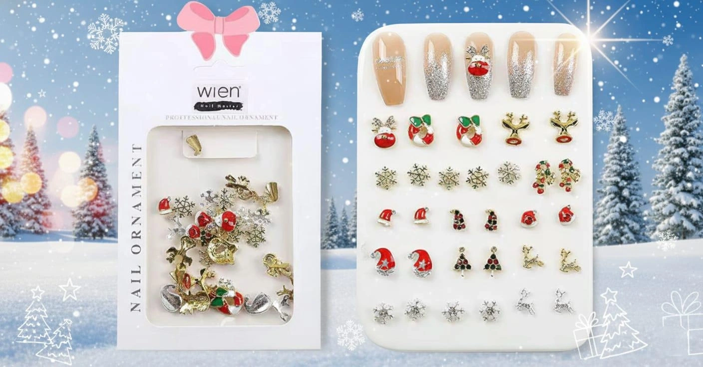 Yılbaşı charm tırnak süsü seti; noel baba şapkası, çam ağacı, kar tanesi, hediye, geyik ve sezon figürlerinden oluşan özel koleksiyondur.